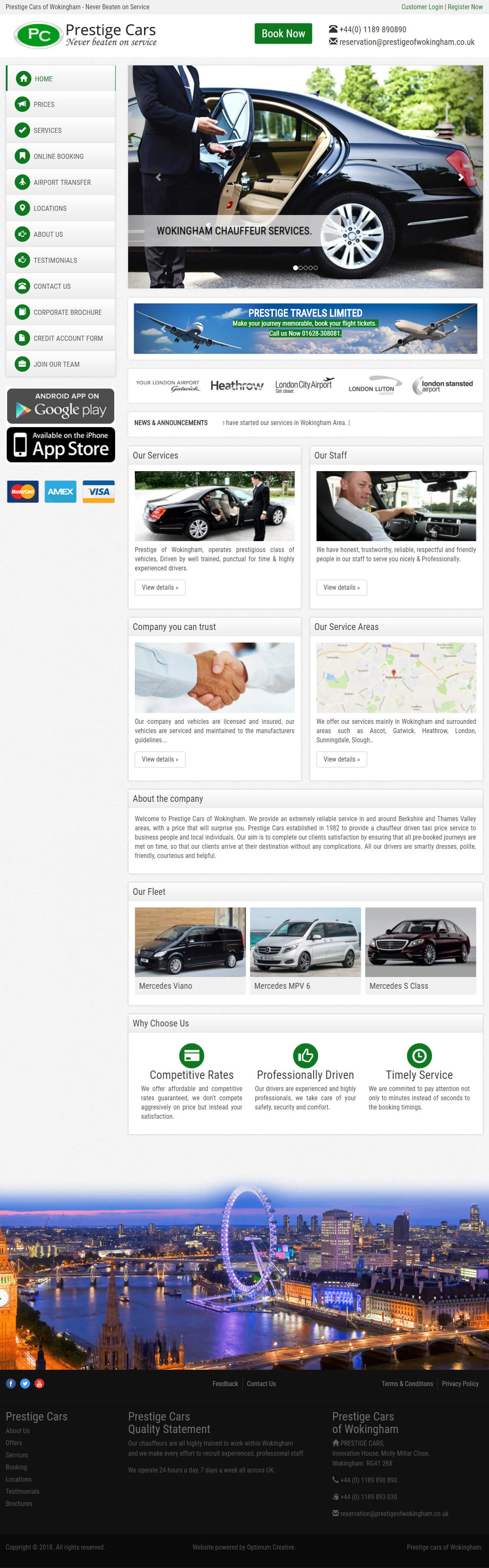 Optimum Creative came up with the idea of complete rebranding of their website and social media. Optimum Creative designed and developed new mobile friendly responsive website for Prestige Cars of Wokingham. We also integrated live chat feature to the website. As a result of integrating live chat feature to the website, their number of booking has increased. Their clients can now easily book or plan their journey easily via live chat.
